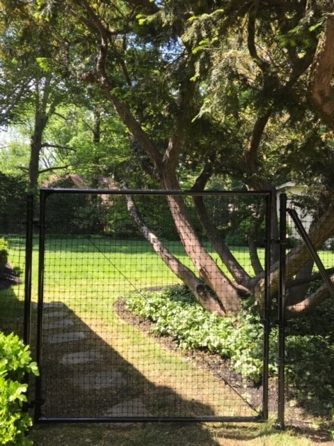 Amanda D in PA had a deer fence installed that consisted of two layers, a poly fence and a metal rodent barrier, using tension cable. Now her hostas and landscaping plants are protected.