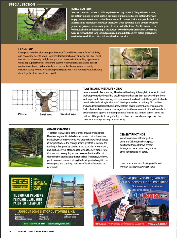Deer Fence Tips From Critterfence was published in Fence News, January 2024 edition. Check it out!
